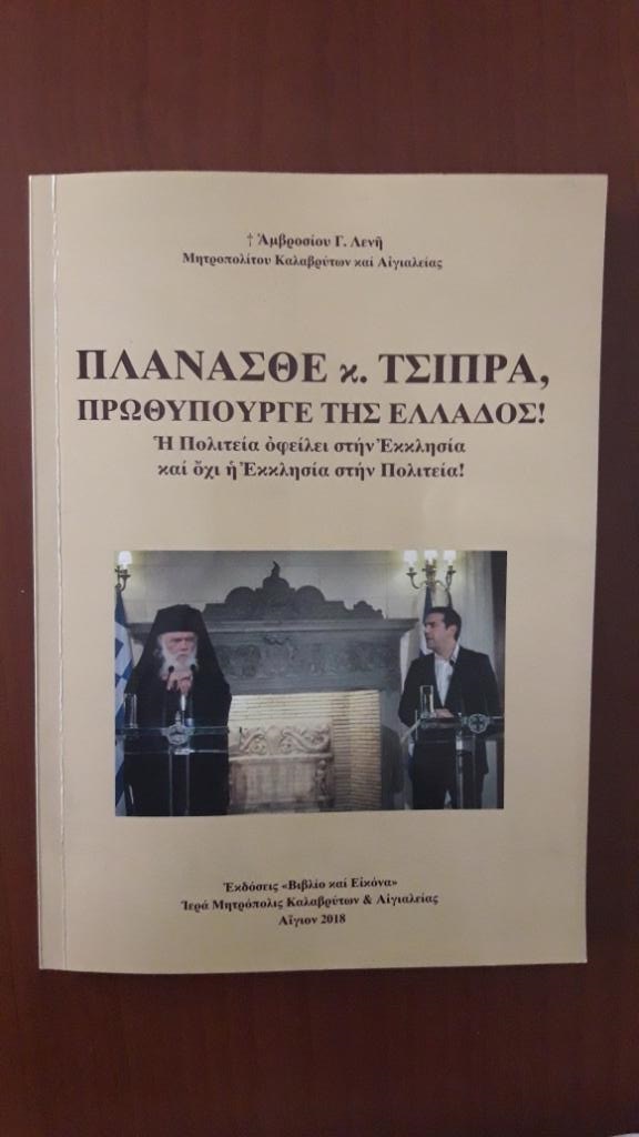 Από τις εκδόσεις τής Ιεράς Μητροπόλεως Καλαβρύτων και Αιγιαλείας «Βιβλίο και Εικόνα» κυκλοφόρησε το νέο πόνημα τού Σεβασμιωτάτου Μητροπολίτου Καλαβρύτων κ. Αμβροσίου με τίτλο «ΠΛΑΝΑΣΘΕ κ. ΤΣΙΠΡΑ, ΠΡΩΘΥΠΟΥΡΓΕ ΤΗΣ ΕΛΛΑΔΟΣ! Η Πολιτεία οφείλει στην Εκκλησία και όχι η Εκκλησία στην Πολιτεία!».