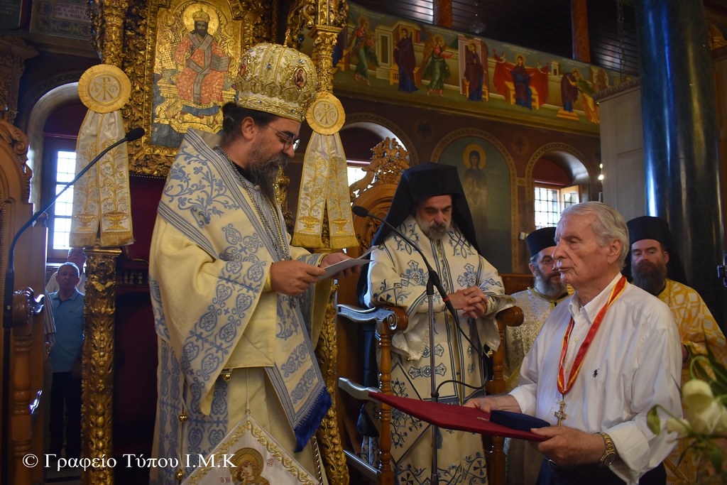 Ὁ Σεβασμιώτατος Μητροπολίτης θέλοντας να τιμήσει τά μέλη τοῦ Συλλόγου Ὁμόνοιας Νέας Ὑόρκης γιά τήν μεγάλη βοήθεια καί συμπαράσταση τους στο φιλανθρωπικό ἔργο τῆς Ἱερᾶς Μητροπόλεως Καστορίας βράβευσε τόν Σύλλογο, στό πρόσωπο τοῦ προέδρου κ. Χρήστου Γιῶβε μέ τόν σταυρό τῆς Παναγίας τῆς Πορφύρας.