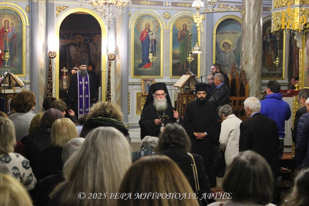 Την Κυριακή 16 Μαρτίου 2025, το απόγευμα, στον ενοριακό Ιερό Ναό του Αγίου Γεωργίου της πόλεως Άρτης, ο Σεβασμιώτατος Μητροπολίτης Άρτης κ. Καλλίνικος προεξήρχε στον Γ΄ Κατανυκτικό Εσπερινό.