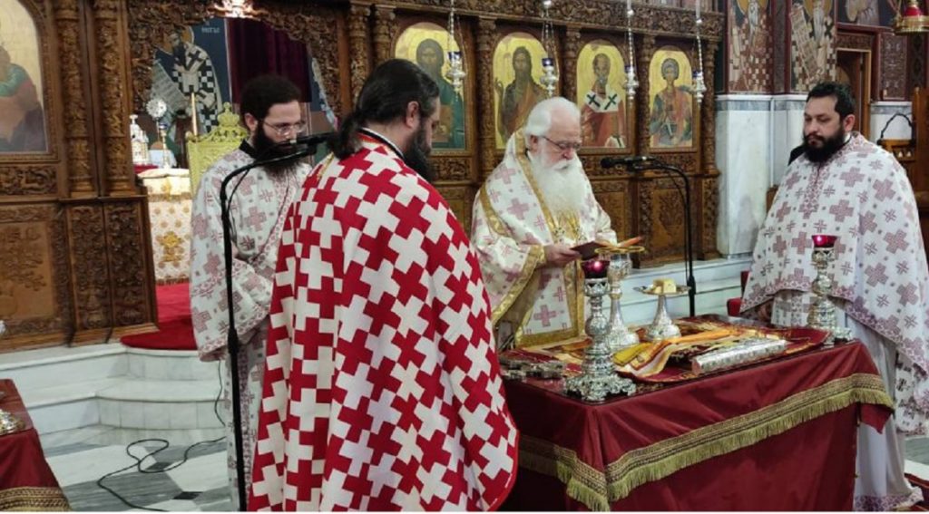 Στο τέλος, ο Σεβασμιώτατος επεσήμανε ότι στη Θεία Λειτουργία εκτυλίσσεται, κάθε φορά, ο επί γης βίος του Κυρίου, από την Γέννησή Του, που συμβολίζει η Προσκομιδή, την έναρξη του απολυτρωτικού Του έργου, που συμβολίζει η Μικρή Είσοδος, την προσφορά του Λόγου Του, διά των Αγιογραφικών αναγνωσμάτων, μέχρι την πορεία προς το Πάθος, που συμβολίζει η Μεγάλη Είσοδος, το Πάθος, την Ταφή και την Ανάσταση, που επαναλαμβάνονται επί της Αγίας Τραπέζης, όπου τελείται το Μυστήριο της Θείας Ευχαριστίας, με το Οποίο επιτυγχάνεται η ένωση των ανθρώπων με τον Θεό και μεταξύ τους. «Από τότε, μέχρι σήμερα», τόνισε, «γύρω από την Αγία Τράπεζα συναντώμεθα όλοι οι πιστοί και τελούμε μαζί το Μυστήριο. Και αυτό το γεγονός συνιστά την επιστροφή μας στον Παράδεισο. Αυτό είναι η Εκκλησία. Γινόμαστε ένα με τον Χριστό και μεταξύ μας».