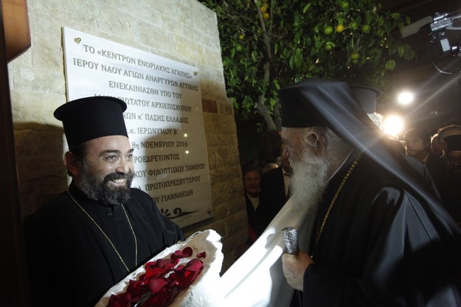 Τα εγκαίνια του υπερσύγχρονου και πρωτοποριακού Κέντρου Ενοριακής Αγάπης βραχυχρόνιας φιλοξενίας συγγενών ασθενών ιερού ναού Αγίων Αναργύρων τέλεσε σήμερα ο Αρχιεπίσκοπος Αθηνών και πάσης Ελλάδος κ. Ιερώνυμος.