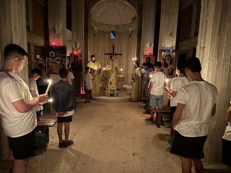 Προ της απολύσεως, τους επαίνεσε για την ενεργή και συνειδητή συμμετοχή τους στην Θεία Λειτουργία και Θεία Ευχαριστία, και προσευχήθηκε ιδιαίτερα για τους κατασκηνωτές αλλά και για όλα αυτά τα παιδιά, που το αντίστοιχο Σαββατόβραδο επιλέγουν να βρίσκονται στις απολαύσεις της σύγχρονης νυχτερινής ζωής, οι οποίες είναι εφήμερες, προκαλούν κόπο, και πολλές φορές στεναχώρια και ψυχικό κενό όταν έλθει το ξημέρωμα.