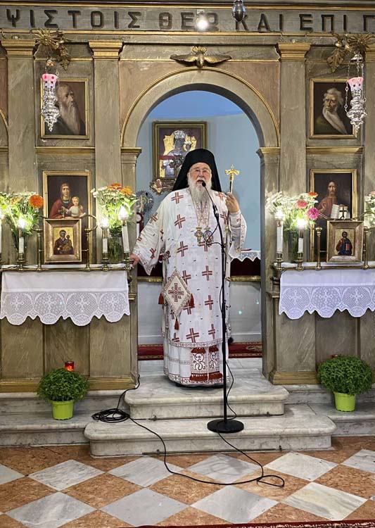 Κατά την Θεία Λειτουργία, έλαβε αφορμή από το ευαγγελικό ανάγνωσμα που αναφέρεται στην παραβολή του οφειλέτη των μυρίων ταλάντων, και αναφέρθηκε στο μεγάλο θέμα της συγχωρητικότητας, το οποίο αφορά όλους μας. Ο Χριστός είναι το μεγάλο παράδειγμα προς μίμησιν μας, ο οποίος συγχώρησε τους σταυρωτές Του, επάνω από το ικρίωμα του σταυρού. Μάλιστα δε, ζήτησε από τον ουράνιο πατέρα Του, αυτή την συγχώρεση, λέγοντας του, ότι δεν γνωρίζουν τι πράττουν. Ο διάβολος, που παρακολουθούσε την πορεία του Θεανθρώπου, από την ώρα του Ευαγγελισμού μέχρι και της καταδίκης Του, που πίστευσε ότι επάνω εις τον σταυρό πλέον είχε καταφέρει την πλήρη αιχμαλωσία του ανθρώπου, στο άκουσμα αυτών των λόγων του Ιησού, συγχωρώντας τους σταυρωτές Του, τότε και πάλι αντιλαμβάνεται ότι ο μεγάλος εσταυρωμένος δεν ήταν ένας απλός άνθρωπος, αλλά ο Θεάνθρωπος.