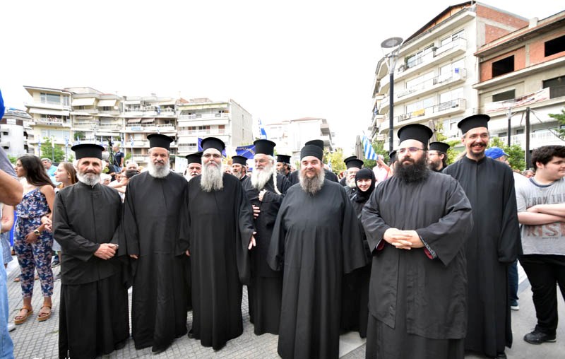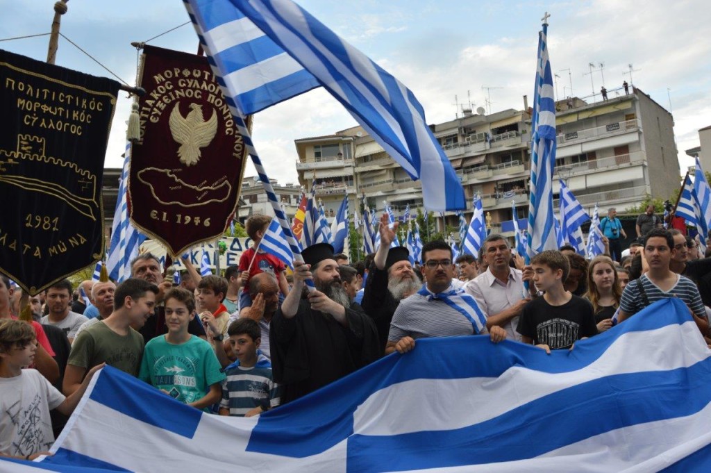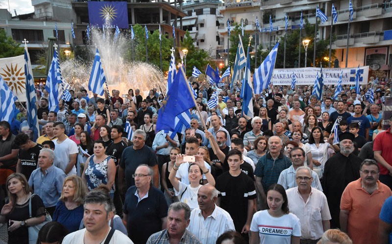 Χαιρετισμούς απηύθυναν ο Όθων Ιακωβίδης, εκπρόσωπος του Κεντρικού Συντονιστικού Οργάνου των Συλλαλητηρίων, η Σοφία Μαυρίδου, Αντιπεριφερειάρχης Πιερίας, ο Σάββας Χιονίδης, Δήμαρχος Κατερίνης και ο Σεβασμιώτατος Μητροπολίτης Κίτρους, Κατερίνης και Πλαταμώνος κ. Γεώργιος. Κεντρική ομιλήτρια ήταν η Μαρία Νεγρεπόντη-Δεληβάνη, Οικονομολόγος και πρ. Πρύτανης του Πανεπιστημίου Μακεδονίας. Ο Σεβασμιώτατος Κίτρους κ. Γεώργιος διευκρίνισε ότι το συλλαλητήριο δεν λειτουργεί αντιπολιτευτικά στην Κυβέρνηση. Γίνεται, όπως διευκρίνισε, για να δώσουμε στους Κυβερνήτες μας ισχυρό διαπραγματευτικό εργαλείο, ώστε να εξασφαλισθούν τα δίκαια του Έθνους μας. Να σημειωθεί ότι στο συλλαλητήριο της Κατερίνης συμμετείχαν οργανωμένα 30 περιφερειακές Ενορίες από ολόκληρη την Πιερία, διευκολύνοντας τη μαζική συμμετοχή με ναυλωμένα λεωφορεία, όπως άλλωστε είχε συμβεί και στις πρόσφατες αντίστοιχες διοργανώσεις στη Θεσσαλονίκη και στην Αθήνα. Ιδιαίτερη αίσθηση προξένησε η συμμετοχή των πολιτών ιδιαίτερα των νέων, εάν λάβει κανείς υπόψη ότι το συλλαλητήριο συνέπεσε με την έναρξη των πανελληνίων εξετάσεων και την καπνοπαραγωγική περίοδο.