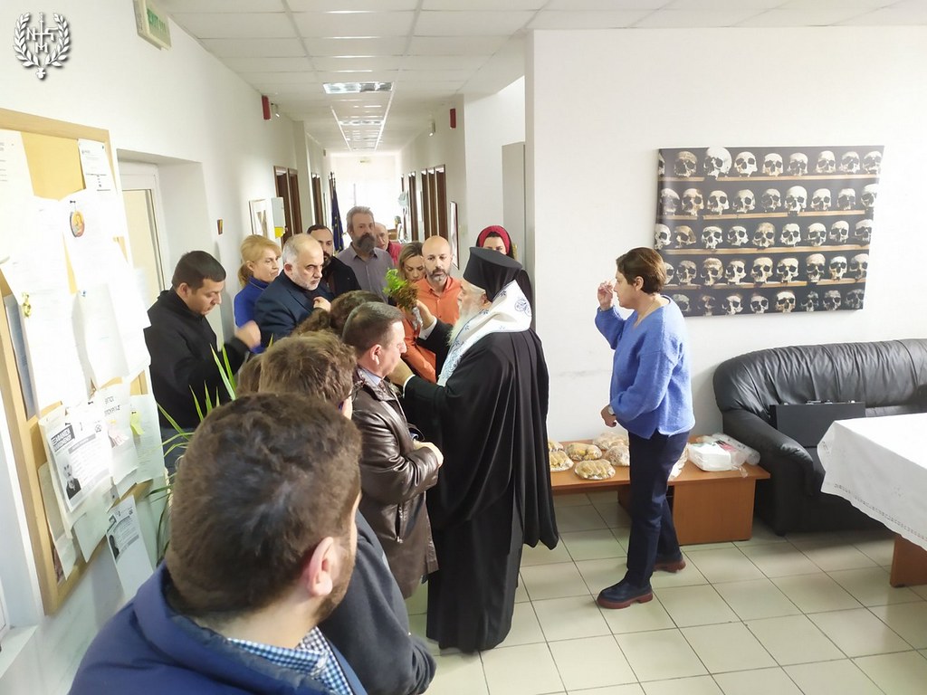 Στη συνέχεια, ο Σεβασμιώτατος, μετέβη στην Ιατροδικαστική Υπηρεσία Θεσσαλονίκης, στην περιοχή των Διαβατών, όπου τέλεσε την ακολουθία του Αγιασμού και ευλόγησε την Αγιοβασιλόπιτα για τους εργαζομένους της Υπηρεσίας.