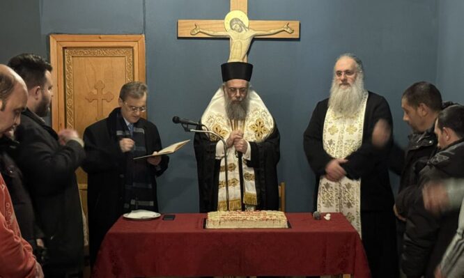 Στη συνέχεια, μετέβη στο Υπερώο του Ιερού Μητροπολιτικού Ναού Αγίου Νικολάου, όπου ευλόγησε την Αγίοβασιλειόπιτα της νεανικής σύναξης της Ιεράς Μητροπόλεως, η οποία πραγματοποιείται κάθε Πέμπτη υπό την ευθύνη του Γενικού Αρχιερατικού Επιτρόπου, Πρωτοπρεσβυτέρου Λάμπρου Κολώνα.