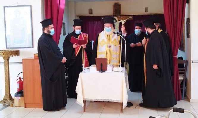 Στην προσλαλιά του ο Σεβασμιώτατος, ευχήθηκε στους εγκαταβιούντας, στον Διευθυντή π. Ιωάννη Καπελλάκη, στον Ιατρό κ. Γρινάκη Γεώργιο και στα άλλα μέλη του Διοικητικού Συμβουλίου και στους εργαζόμενους καλή και ευλογημένη χρονιά, με υγεία και δημιουργία.