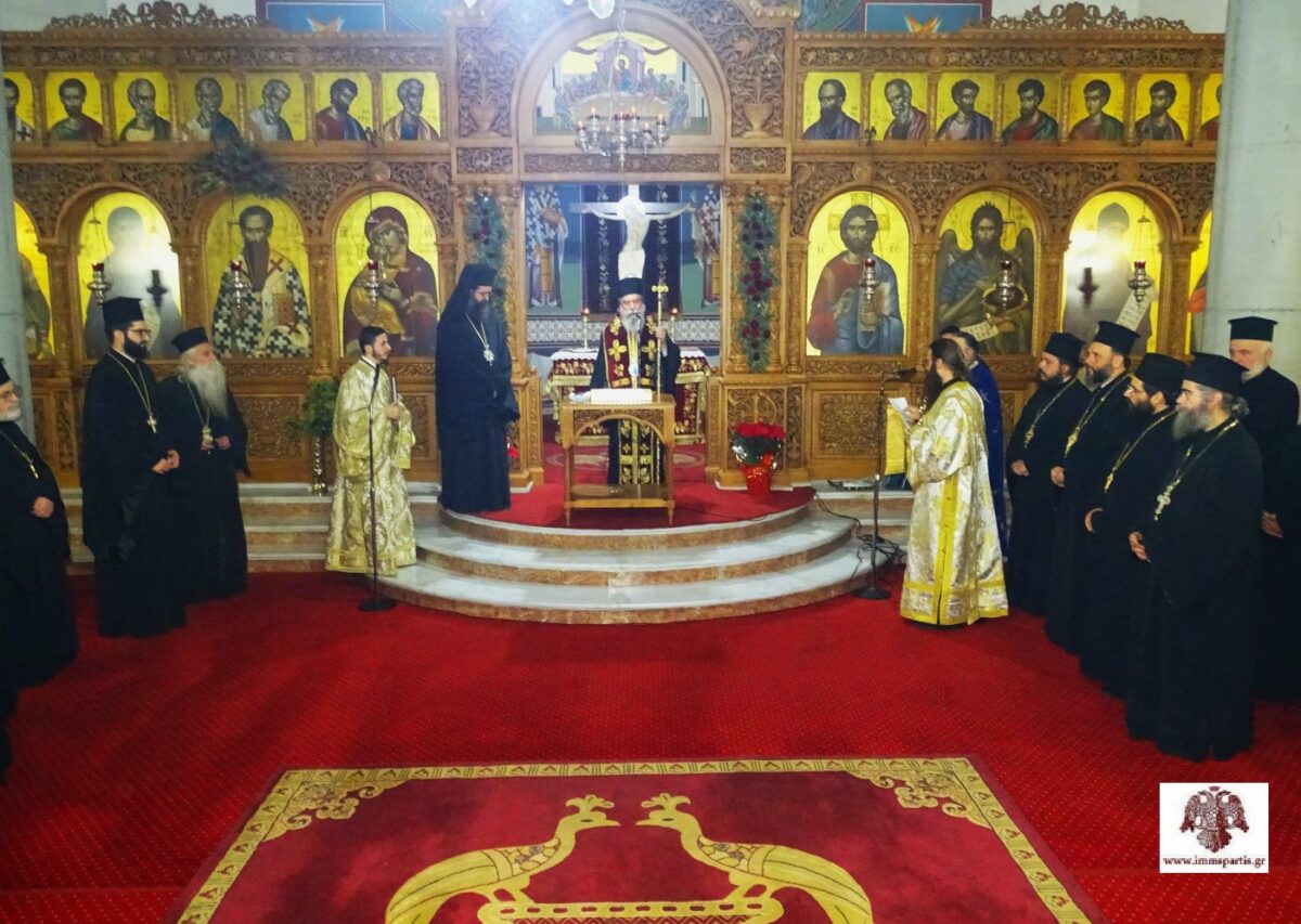 Με την ολοκλήρωση του Εσπερινού ευλογήθηκε η πρώτη Βασιλόπιτα του νέου έτους από τον Σεβασμιώτατο Μητροπολίτη μας. Στην ομιλία του ο σεπτός Ποιμενάρχης μας, αφού υπογράμμισε την ανάγκη να συνειδητοποιήσουμε την φθαρτότητά μας, το εφήμερο της επίγειας ζωής και την ελαχιστότητα αυτής μπροστά στην αιωνιότητα, προέτρεψε κάθε χριστιανό να θέσει ως στόχο κατά το νέο έτος να δώσει νόημα στη ζωή του ασπαζόμενος την διδασκαλία της πίστεώς μας, που προϋποθέτει προσευχή, μετάνοια, συγχωρητικότητα, ταπεινότητα και θεάρεστα έργα.
