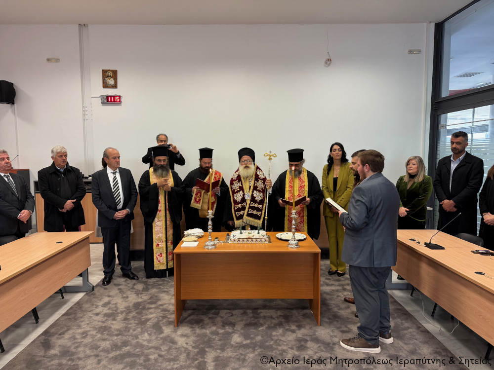 Ακολούθησαν οι ευχές του Σεβασμιωτάτου κ. Κυρίλλου, ο οποίος καρδιακά ευχήθηκε στον Δήμαρχο κ. Φραγκούλη, τους συνεργάτες του και όλα τα μέλη του Δημοτικού Συμβουλίου καλή και δημιουργική νέα χρονιά και η αίθουσα συνεδριάσεών τους να είναι χώρος γόνιμου και εποικοδομητικού διαλόγου, συνεργασίας και συνετών αποφάσεων για το καλό και την πρόοδο του τόπου μας.