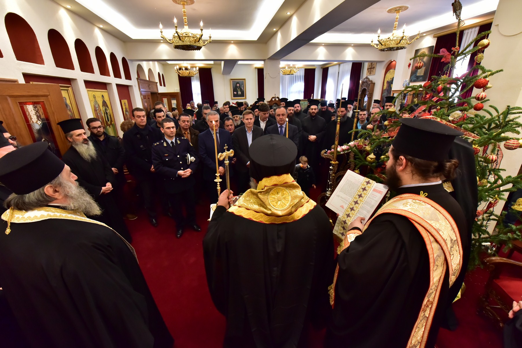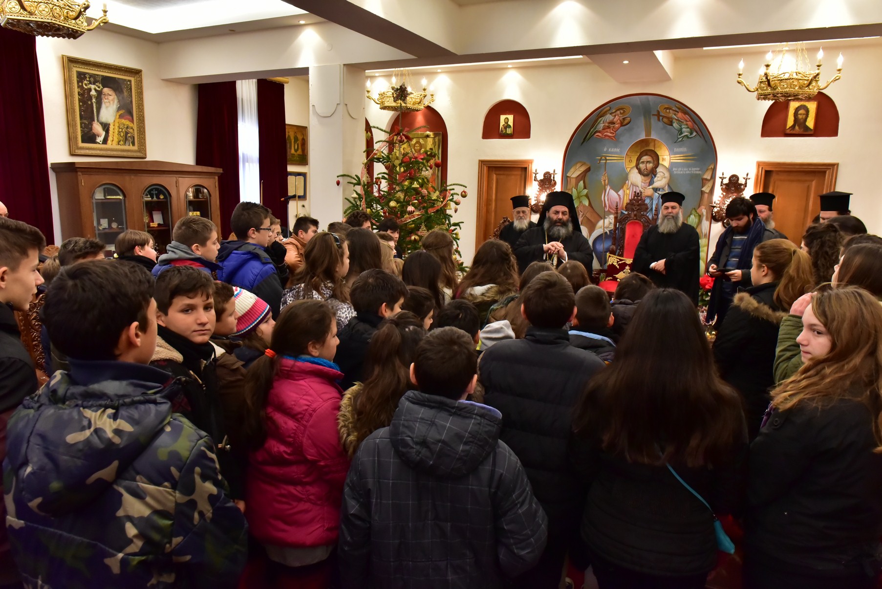 Νωρίτερα, νέοι και νέες της επαρχίας μας καθώς και πιστοί από όλες τις ηλικίες, προσήλθαν και ευχήθηκαν στον Μητροπολίτη Λαγκαδά κ.κ. Ιωάννη, τα Χρόνια Πολλά ενόψει του ανατέλλοντος Νέου Έτους, ενώ οι χορωδίες του Στρατοπέδου της 34ης Μηχανοκίνητης Ταξιαρχίας Πεζικού και της Φιλαρμονικής Μπάντας του Δήμου Λαγκαδά, έψαλαν και τραγούδησαν με θαυμαστό τρόπο τα Πρωτοχρονιάτικα και Παραδοσιακά κάλαντα διαφόρων περιοχών της Πατρίδος μας, εισάγοντας ακόμα πιο πολλή στο εορταστικό κλίμα των ημερών.