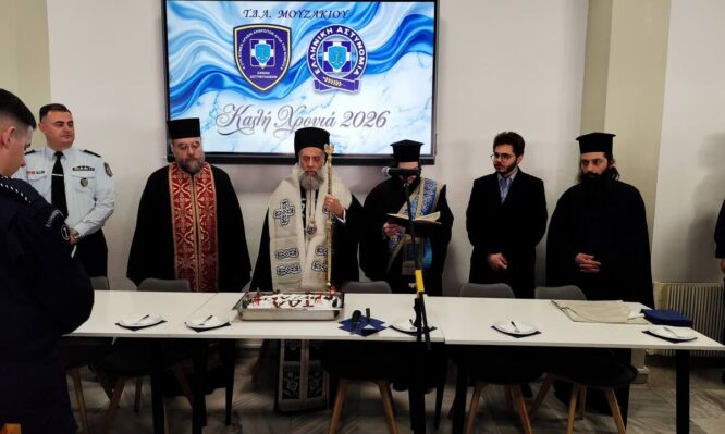 Την Πέμπτη 8 Ιανουαρίου 2026 πραγματοποιήθηκε η κοπή της Πρωτοχρονιάτικης βασιλόπιτας στη Σχολή Αστυφυλάκων Μουζακίου. Τη βασιλόπιτα ευλόγησε και έκοψε ο Σεβασμιώτατος Μητροπολίτης μας Θεσσαλιώτιδος και Φαναριοφερσάλων κ. Τιμόθεος, πλαισιωμένος από τον Καθηγούμενο της Ιεράς Μονής Παναγίας Σπηλιάς Πανοσιολογιώτατο Αρχιμανδρίτη π. Νεκτάριο Μητρόπουλο και τον Αρχιερατικό Επίτροπο Μουζακίου και εφημέριο του Ιερού Ναού Κοιμήσεως της […]
