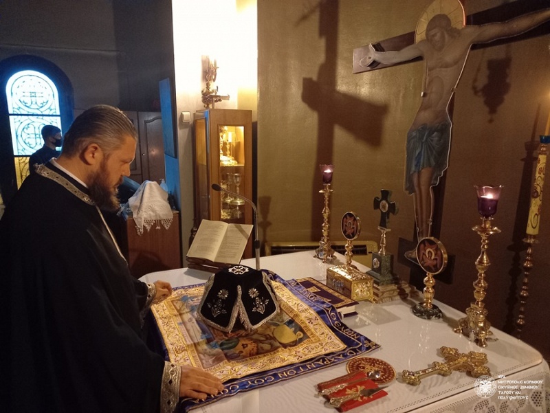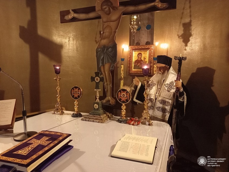 Στον Ιερός Ναό Μεταμορφώσεως του Σωτήρος Κορίνθου τέλεσε χθες Τετάρτη, 23 Μαρτίου 2022, την Θεία Λειτουργία των Προηγιασμένων Τιμίων Δώρων, ο Σεβασμιώτατος Μητροπολίτης Κορίνθου κ. Διονύσιος συλλειτουργούντων του Εφημερίου του Ναού Πανοσ. Αρχιμ. π. Αρκαδίου Ραζνύ και των Διακόνων π. Δαμασκηνού Γεννηματά και π. Γερασίμου Λάμπου.