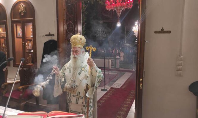 Το βράδυ της 31ης Δεκεμβρίου 2025, ο σεπτός Ποιμενάρχης μας κ. Παύλος χοροστάτησε στον Μέγα Πανηγυρικό Εσπερινό στον Ι. Ναό Αγίου Βασιλείου στο ομώνυμο χωρίο της Αρχιερατικής Περιφέρειας Κλεωνών. Στο πέρας του εσπερινού, απευθυνόμενος στον Αρχιερατικό Επίτροπο Αιδεσ. Πρωτ/ρο π. Αθανάσιο Αλτανόπουλο, τους Ιερείς και τους ευλαβείς προσκυνητές ομίλησε για τον Μέγα Βασίλειο και τις […]