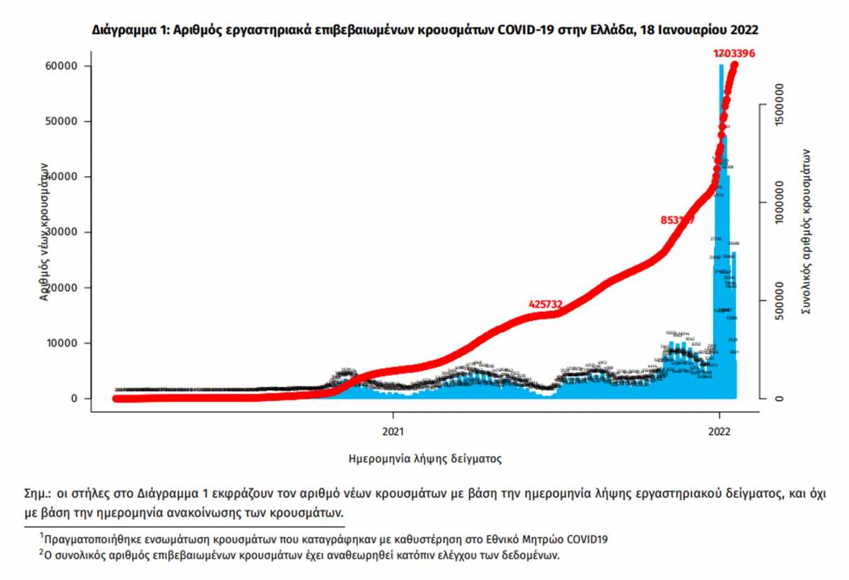 Εν τω μεταξύ ο ΕΟΔΥ ενημερώνει και σήμερα, Τρίτη 18.01.2022, για το πώς «κινήθηκε» ο κορονοϊός τις τελευταίες 24 ώρες στην χώρα μας, παρότι αυτό έγινε… μετ’ εμποδίων (διαβάστε αναλυτικά εδώ).