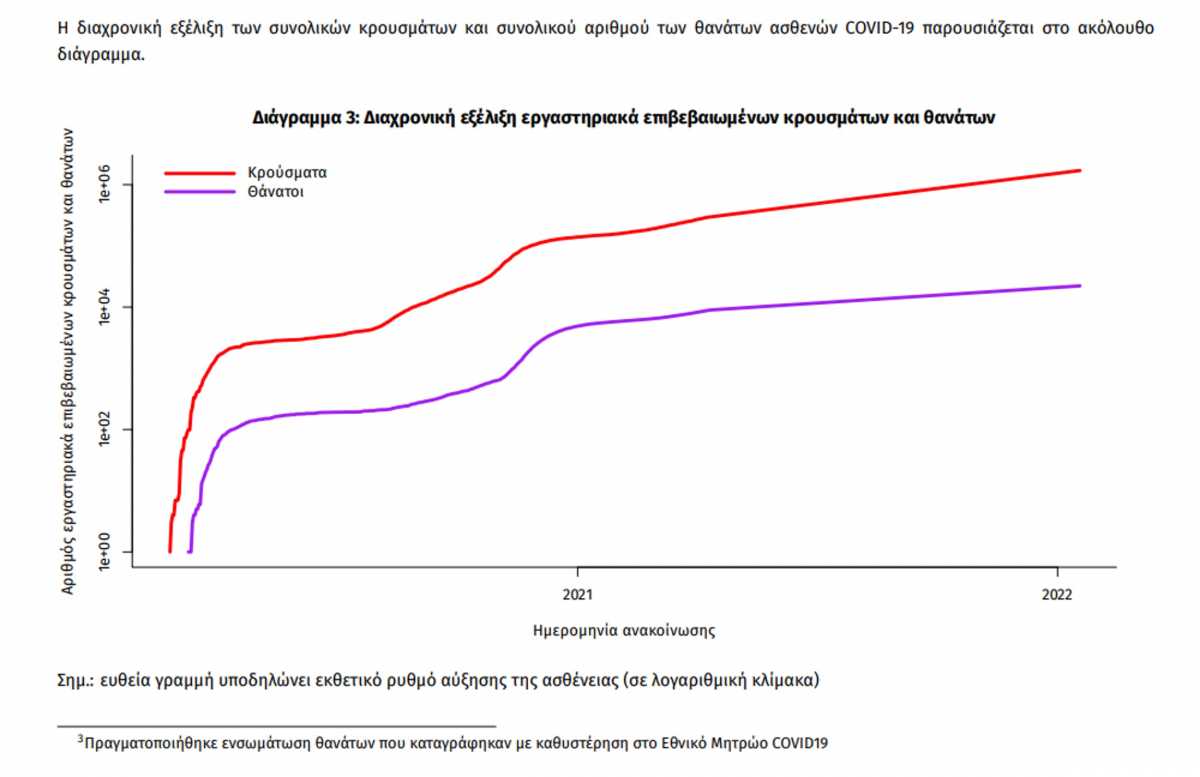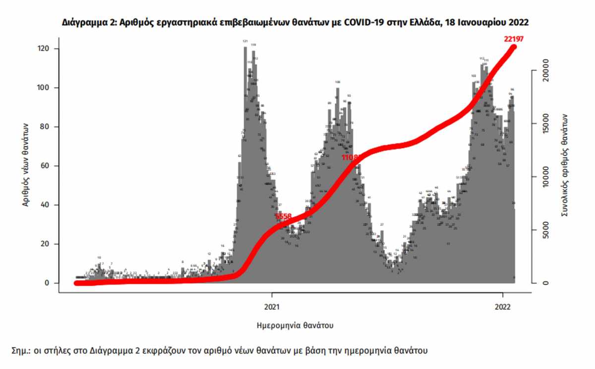 Οι νέοι θάνατοι ασθενών με COVID-19 είναι 106, ενώ από την έναρξη της επιδημίας έχουν καταγραφεί συνολικά 22.197 θάνατοι. 3 Το 95.0% είχε υποκείμενο νόσημα ή/και ηλικία 70 ετών και άνω.