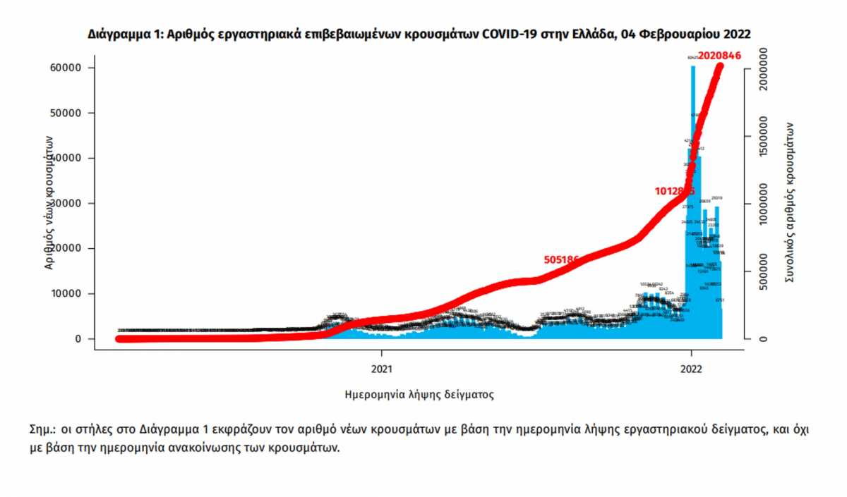 Όπως κάθε μέρα έτσι και σήμερα, Παρασκευή 04.02.2022, ο ΕΟΔΥ ενημερώνει για το πώς «κινήθηκε» ο κορονοϊός τις τελευταίες 24 ώρες στη χώρα μας.