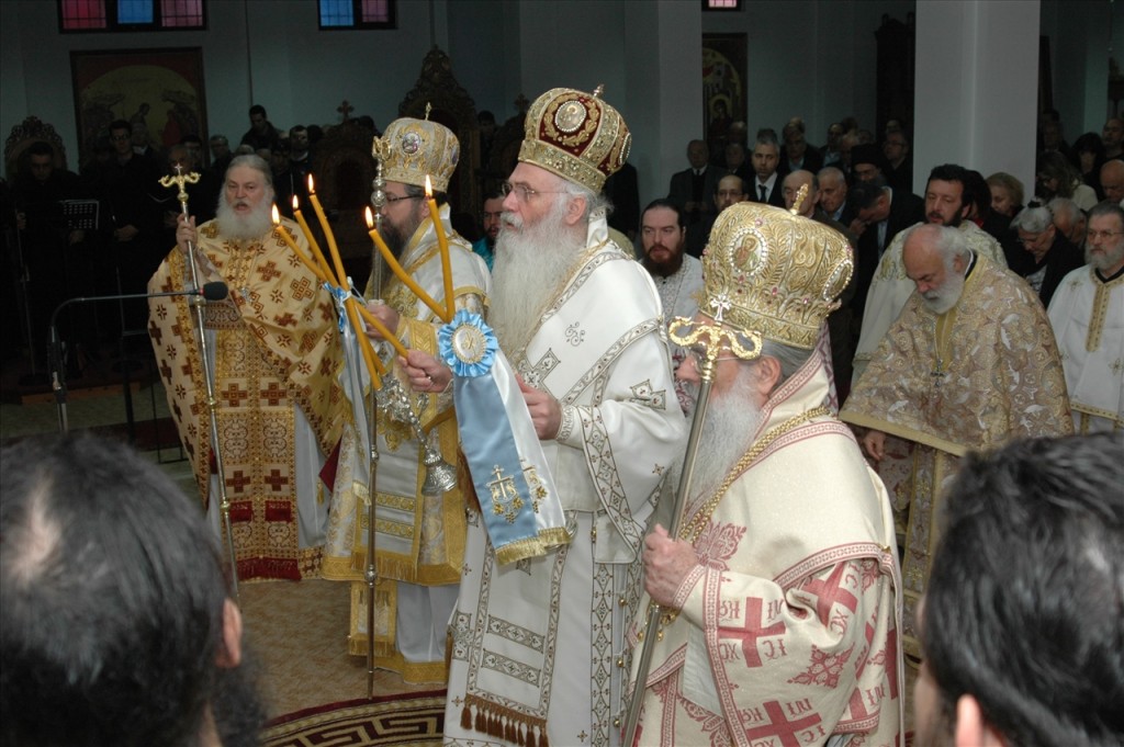 Ο μητροπολίτης Μεσογαίας κ. Νικόλαος προεξήρχε του αρχιερατικού συλλείτουργου που τελέστηκε στον υπό ανέγερση ναό του Αγίου και στο οποίο συμμετείχαν ο μητροπολίτης Λευκάδος κ. Θεόφιλος, οι επιχώριος μητροπολίτης κ. Ιγνάτιος και ο καθηγούμενος της μονής Βατοπαιδίου κ. Εφραίμ.