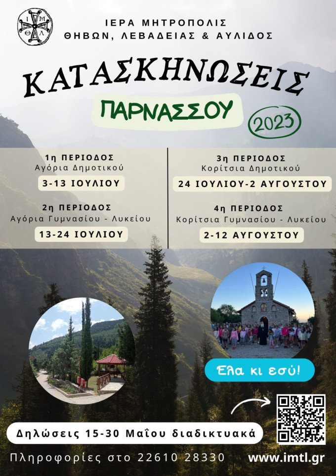 Οι κατασκηνώσεις της Ι.Μ. Θηβών Λεβαδείας και Αυλίδος στην Ι.Μ Ιερουσαλήμ στον Παρνασσό ανοίγουν τις πύλες τους για να φιλοξενήσουν και πάλι παιδιά και νέους της Μητροπόλεώς.