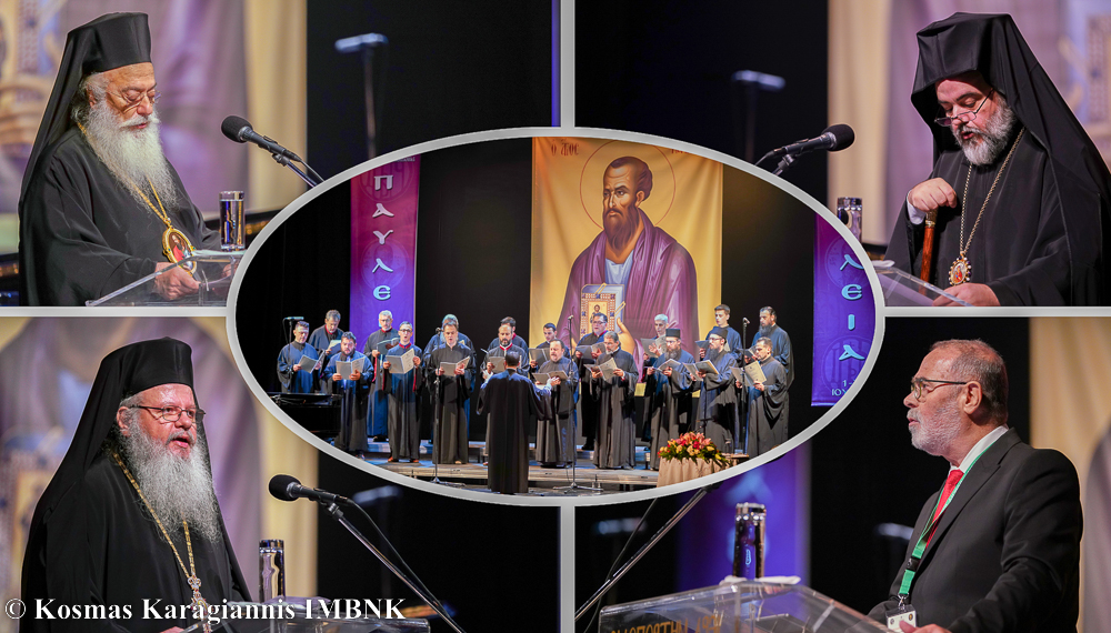 Θά ἤθελα πρωτίστως νά ἐκφράσω τίς θερμότατες εὐχαριστίες καί τή βαθύτατη εὐγνωμοσύνη μου πρός τόν Παναγιώτατο Οἰκουμενικό Πατριάρχη κ.κ. Βαρθολομαῖο γιά τό σεπτό Πατριαρχικό του μήνυμα καί τήν ἀποστολή ὡς ἐκπροσώπου του στό Συνέδριο καί τίς λατρευτικές ἐκδηλώσεις πρός τιμήν τοῦ ἀποστόλου Παύλου, τοῦ Σεβασμιωτάτου Μητροπολίτου Σμύρνης κ. Βαρθολομαίου.
