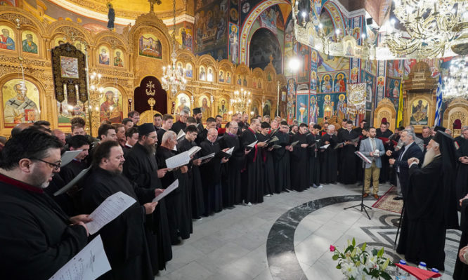 Εἶναι ἡ χορωδία τοῦ Συλλόγου Ἱεροψαλτῶν τῆς Ἱερᾶς Μητρο­πό­λεως Φλωρίνης, Πρεσπῶν καί Ἑορ­δαίας «Ἅγιος Ἰωάννης ὁ Δαμα­σκηνός», ὑπό τή διεύθυνση τοῦ κ. Βασιλείου Δόντσιου, ἡ Χορωδία τῆς Σχολῆς Βυζαντινῆς Μουσικῆς τῆς Ἱερᾶς Μητροπόλεως Ἐδέσσης, Πέλλης καί Ἀλμωπίας «Ρωμανός ὁ Μελωδός», ὑπό τή διεύθυνση τοῦ κ. Ἀριστοτέλη Βογιατζόγλου, καί ἡ χορωδία τοῦ Συλλόγου Ἱεροψαλ­τῶν τῆς Ἱερᾶς Μητροπόλεώς μας «Κωνσταντίνος Πρίγγος», ὑπό τή διεύθυνση τοῦ κυρίου Βασιλείου Μαυράγκανου.