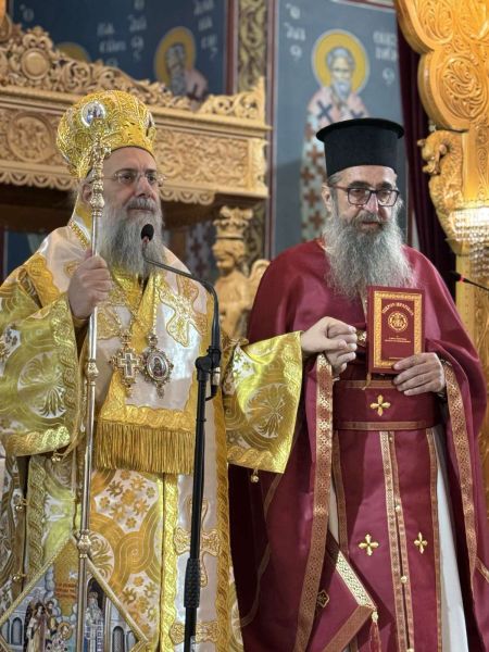 Στο τέλος της Θείας Λειτουργίας, ο Σεβασμιώτατος Χειροθέτησε τον νέο Πρεσβύτερο σε Πρωτοπρεσβύτερο, αναγνωρίζοντας την αγάπη του προς τον Θεό και την αφοσίωσή του στην Εκκλησία.