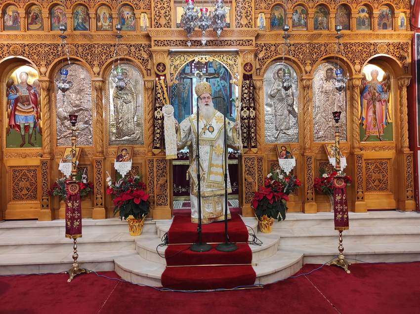 Προ της απολύσεως ο Εφημέριος του Ι. Ναού, εκφράζοντας τα αισθήματα όλων των ενοριτών και του Εκκλησιαστικού Συμβουλίου καλωσόρισε τον Σεβ. Μητροπολίτη μας ευχόμενος καλή Ποιμαντορία. Στην αντιφώνησή Του ο Σεβασμιώτατος ευχαρίστησε τον Εφημέριο π. Νικόλαο και τους πιστούς και με αφορμή την Ευαγγελική περικοπή, επεσήμανε ότι η Εκκλησία μας καλεί να εορτάσουμε θεοπρεπώς τα Χριστούγεννα, με την προσδοκία ο Χριστός να γεννηθεί μέσα στην καρδιά μας.