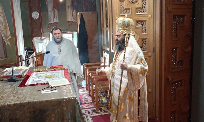 Ο Θεοφιλέστατος Επίσκοπος Τεγέας κ. Θεόκλητος τέλεσε τον Όρθρο και την Θεία Λειτουργία στον ενοριακό Ιερό Ναό Γεννήσεως του Χριστού Πούλιθρων Λεωνιδίου.