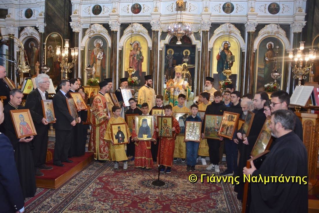 Έπειτα, πραγματοποιήθηκε η καθιερωμένη λιτάνευση των ιερών εικόνων εντός του Ναού και η ανάγνωση του «Συνοδικού» της Ζ’ Οικουμενικής Συνόδου. Στο τέλος της λιτανείας ο Ποιμενάρχης μας καλωσόρισε στην πόλη μας τον νέο Διοικητή της 12ης Μ/Κ Μεραρχίας Υποστράτηγο Ιωάννη Κορρέ, δίνοντάς του μια εικόνα της Παναγίας του Έβρου.