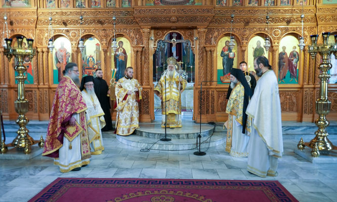 Στο τέλος της Θείας Λειτουργίας ο Σεβασμιώτατος ανέγνωσε τη συγχωρητική ευχή με την ευκαιρία της ενάρξεως της Αγίας και Μεγάλης Τεσσαρακοστής και αφού ζήτησε πρώτα ο ίδιος τη συγχώρηση από το εκκλησίασμα έδωσε στη συνέχεια την πατρική του ευχή και συγχώριση σε όλους.