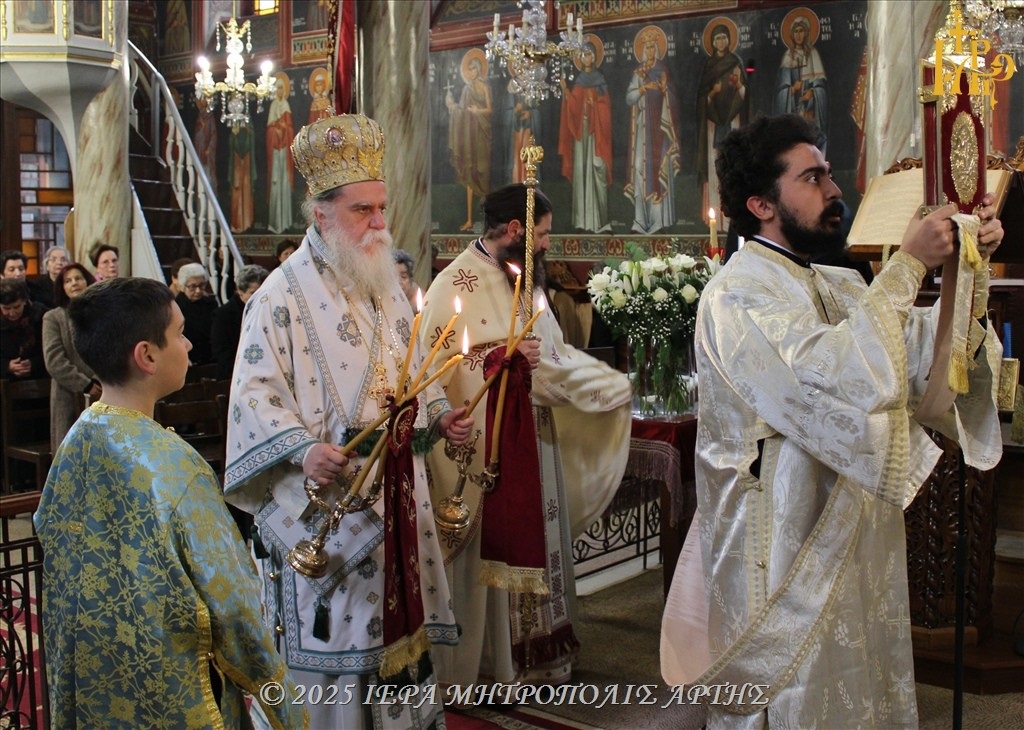 Την Κυριακή 2 Μαρτίου 2025, το πρωΐ, στον Ενοριακο Ιερό Ναό του Αγίου Γεωργίου στην πόλη της Άρτας, ελειτούργησε ο Σεβασμιώτατος Μητροπολίτης Άρτης κ. Καλλίνικος.