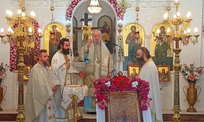 Την Κυριακή των 318 θεοφόρων πατέρων ο Σεβασμιώτατος Μητροπολίτης Καρυστίας και Σκύρου κ. Σεραφείμ με την ευκαιρία της προλαβούσης δεσποτικής εορτής της Αναλήψεως του Χριστού τέλεσε την Αρχιερατική Θεία Λειτουργία στον ιερό ναό της Αναλήψεως στο χωρίο των Μαλετιάνων Κύμης.