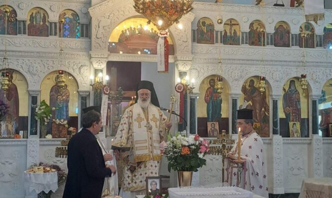 Την Κυριακή των Μυροφόρων, 4 Μαΐου 2025, ο Σεβ. Μητροπολίτης μας κ. Ανδρέας μετέβη στον Ιερό Ναό Αγίας Ειρήνης Εμπάρου, όπου τέλεσε την Θεία Λειτουργία και κήρυξε καταλλήλως στο εκκλησίασμα. Προ της απολύσεως τελέστηκε το τεσσαρακονθήμερο μνημόσυνο της μακαριστής Πολύμνιας Μηλιαρά.