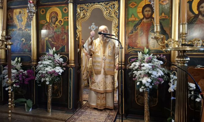 Την Κυριακή των Μυροφόρων 26 Απριλίου ο Σεβασμιώτατος Μητροπολίτης Καρυστίας και Σκύρου κ. Σεραφείμ μετέβη στο καθολικό της Ιεράς Μονής Μεταμορφώσεως του Σωτήρος Κυμης όπου και ιερούργησε στην Θεία Λειτουργία με συλλειτουργούς τον Γέροντα της Ιεράς Μονής και Ηγούμενο της Ιεράς Μονής Τιμίου Προδρόμου Καρυών Αχλαδερής Πανοσ Αρχίμ Νικόδημο Γιαννακόπουλο τους Πανοσ Αρχιμ π. Αντώνιο Αγγελόπουλο π. Πρόδρομο Γκέγκε και τον Πρωτοπρ π. Ίγορ – Ιωάννη Ζιρόγεβιτς.