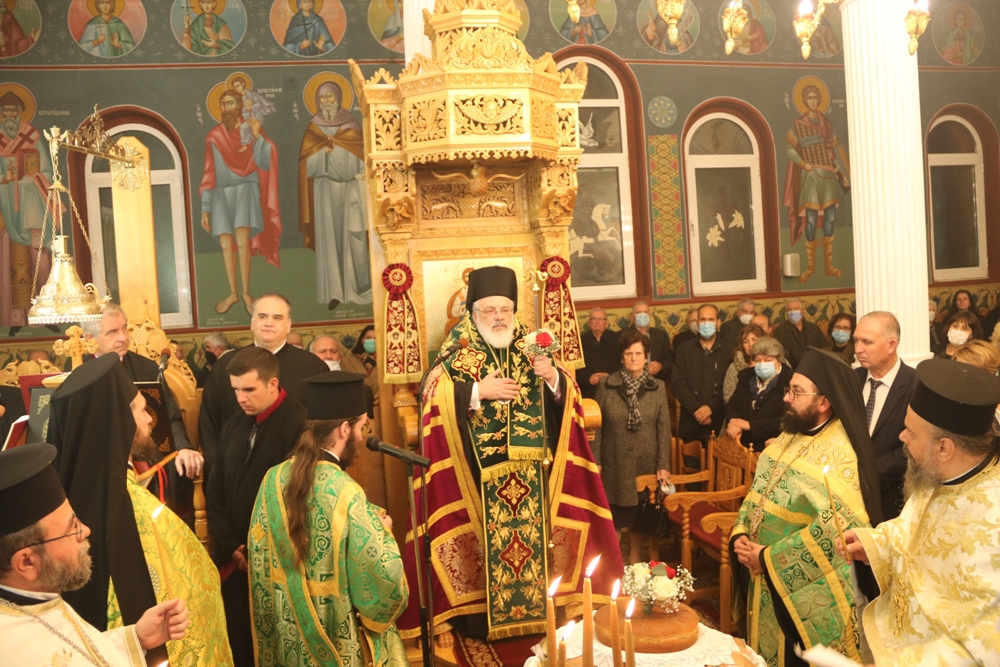 Και κατέληξε: «Τά Χριστούγεννα πλησιάζουν, ἀγαπητοί. Τό Μέγα Δεῖπνο τῆς Ἐκκλησίας μᾶς περιμένει. Μήν τό χάσουμε. Μήν ἀνταλλάξουμε τήν οὐράνια τρυφή μέ τή ματαιότητα τῆς γῆς. Μή χάσουμε τό ἀληθινό φῶς γιά τά φτηνά λαμπιόνια τοῦ κόσμου, τή δόξα τοῦ Θεοῦ γιά τή χρυσόσκονη τῶν ψευδαισθήσεων. «Πάντες ἀπολαύσατε τοῦ συμποσίου τῆς πίστεως∙ πάντες ἀπολαύσατε τοῦ πλούτου τῆς χρηστότητος. Μηδείς θρηνείτω πενίαν∙ ἐφάνη γάρ ἡ κοινή Βασιλεία». Μακάρι σ’ αὐτή τή Βασιλεία νά εἴμεθα ἄξιοι καί τιμημένοι συνδαιτυμόνες τῶν ἁγίων καί συμμετέχοντες στή μετάληψη τοῦ Σώματος καί τοῦ Αἵματος τοῦ Χριστοῦ, τοῦ Σωτήρα καί Λυτρωτοῦ μας».