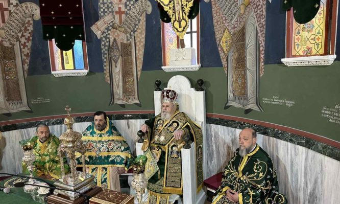 Στη Θεία Λειτουργία που ετέλεσε ο Σεβασμιώτατος Μητροπολίτης μας συμπαραστατούμενος από τον Πανοσιολ. Ιεροκήρυκα της Ιεράς Μητροπόλεώς μας Αρχιμ. Καλλίνικο Νικολάου, τον Πανοσιολ. Προϊστάμενο του Ιερού Ναού μας Αρχιμ. Χριστόδουλο Κοτσίφη και άλλους κληρικούς, ο Σεβασμιώτατος κήρυξε το Θείο Λόγο σχολιάζοντας θεολογικά τη σημερινή Ευαγγελική Περικοπή.