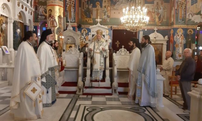 Τα ιερά αναλόγια διηκόνησαν ο Πρωτοψάλτης και καθηγητής της Σχολής Βυζαντινής Μουσικής της Ιεράς Μητροπόλεως κ. Θεοδόσιος Στεργιόπουλος και ο Λαμπαδάριος κ. Νικόλαος Ενωτιάδης.