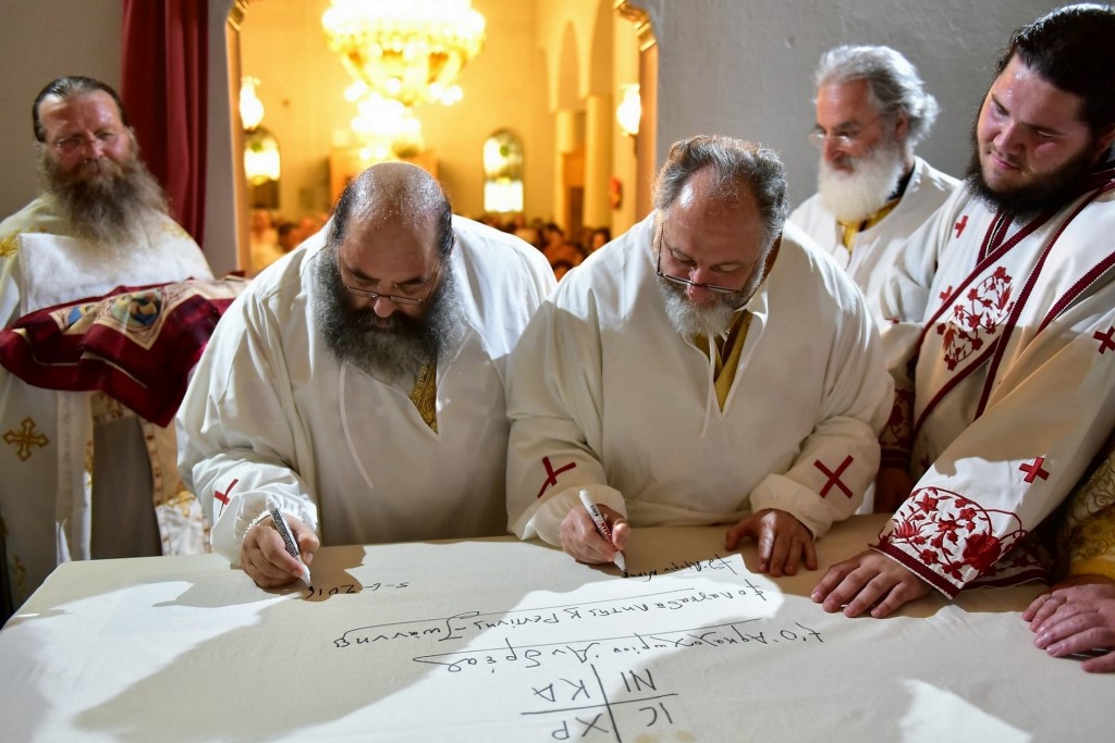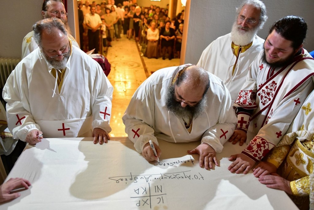 Της Ακολουθίας των Εγκαινίων προεξήρχε ο Σεβασμιώτατος Μητροπολίτης Αρκαλοχωρίου, Καστελλίου και Βιάννου κ. κ. Ανδρέας, συμπαραστούμενος του Θεοφιλεστάτου Επισκόπου Αμορίου κ.κ. Νικηφόρου και του επιχώριου Μητροπολίτου Λαγκαδά, Λητής και Ρεντίνης κ.κ. Ιωάννου. Πλήθος κόσμου παρέστη συμπροσευχόμενο στο σπουδαίο αυτό γεγονός για την επαρχίας μας, μεταξύ αυτών και οι Βουλευτές της Ν.Δ. κ. Θεόδωρος Καράογλου και των Αν.Ελλ. κ. Γεώργιος Λαζαρίδης, εκπρόσωποι της Δημοτικής Αυτοδιοικήσεως και της Τοπικής Κοινότητος, του Στρατού Ξηράς, του Ναυτικού και των Σωμάτων Ασφαλείας, καθώς επίσης και των Πολιτιστικών Φορέων της περιοχής οι οποίοι και ήταν ενδεδυμένοι με τις παραδοσιακές φορεσιές της περιοχής.