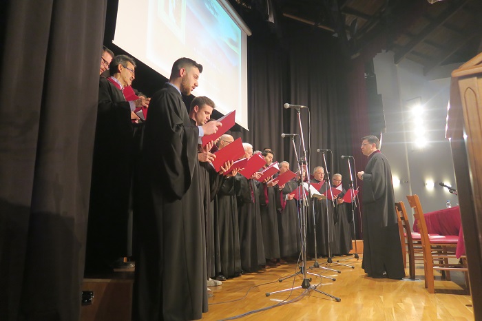 Την εκδήλωση παρουσίασε ο Ιδιαίτερος γραμματεύς του Σεβασμιωτάτου Μητροπολίτου μας κ. Νικολάου. Αιδεσιμλ. Πρεσβ. π. Αθανάσιος Κυρίτσης και αρχικά πολυμελής βυζαντινή χορωδία της Σχολής Βυζαντινής Μουσική της Ιεράς Μητροπόλεως μας, με χοράρχη τον Διευθυντή αυτής κ. Ανδρέα Ιωακείμ, παρουσίασε επίκαιρους Βυζαντινούς ύμνους της Αγίας και Μεγάλης Τεσσαρακοστής, ενώ στο τέλος έψαλε και το απολυτίκιο του αγίου Γέροντος Βησσαρίωνα, ποίημα του αειμνήστου π. Δαμασκηνού.