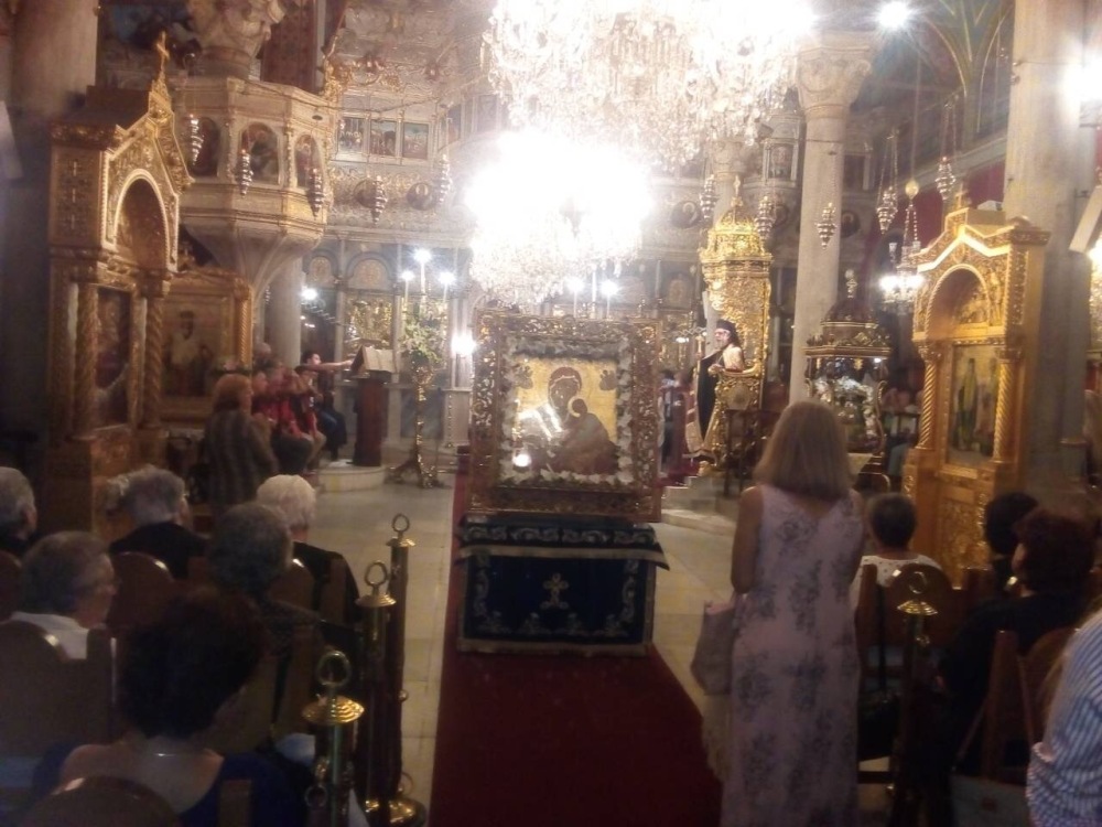 Υπογράμμισε δε ότι η σημερινή πάνδημη προσέλευση των Μυκονίων επιβεβαίωσε τα όσα είχε πει εχθές, ότι είναι φιλακόλουθοι, φιλαυσεβείς και φιλογενείς, με αγάπη προς τον ιερό ζ Κλήρο και την Εκκλησία, το έργο της οποίας παντοιοτρόπως στηρίζουν.