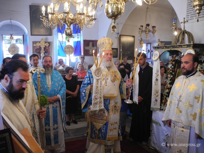 Την παραμονή της εορτής, ο Μητροπολίτης Σύρου κ. Δωρόθεος, προεξήρχε του Πανηγυρικού Εσπερινού. Αμέσως μετά, ευλόγησε τις φανουρόπιτες, που παρασκεύασαν οι γυναίκες του νησιού, όπως προστάζει η παράδοση.