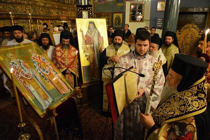Το πρωί ο μητροπολίτης Θεσσαλονίκης κ. Άνθιμος, προεξήρχε αρχιερατικού συλλείτουργου συμπαραστατούμενος από τους μητροπολίτες Μιλήτου κ. Απόστολο, Άρτης κ. Ιγνάτιο, Δράμας κ. Παύλο, Μαρωνείας κ. Παντελεήμονα, τον Επίσκοπο Θερμών κ. Δημήτριο και τον οικείο μητροπολίτη κ. Ιωάννη.