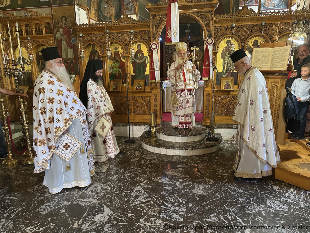 Στην Αρχιερατική Θ. Λειτουργία έλαβαν μέρος ο Πανοσιολ. Αρχιμ. Αμβρόσιος Σκαρβέλης, Πρωτοσύγκελλος της Ι. Μητροπόλεως, ο Αιδεσιμ. Πρωτ. Μιχαήλ Ξυδιανός, συνταξιούχος Εφημέριος, ο Αιδ/τος Πρωτ. Σάββας Λιναρδάκης, Εφημέριος και προϊστάμενος της Ενορίας, και ο Ιερολ. Διάκονος Θεμιστοκλής Μπεϊνάς, ενώ εκ του Ιερού Βήματος παρέστη συμπροσευχόμενος ο Πανοσιολ. Αρχιμ. Δημήτριος Στρατής.