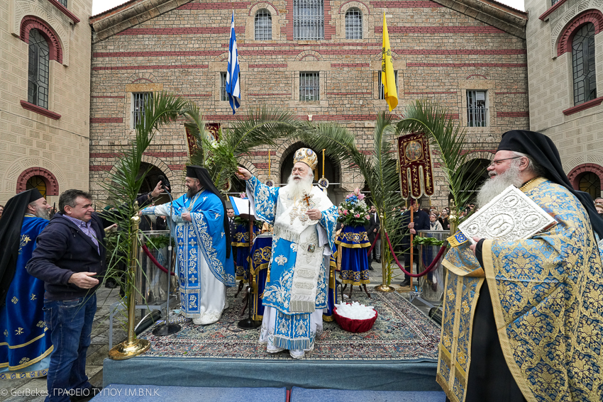 Στο τέλος τελέστηκε στον αύλειο χώρο του Προσκυνηματικού Ναού η Ακολουθία του Μεγάλου Αγιασμού, ενώ ακολούθησε λιτανευτική πομπή προς την περιοχή κάτω από τα κοιμητήρια της Βεροίας, στον ποταμό Τριπόταμο, όπου ο Σεβασμιώτατος Μητροπολίτης κ. Παντελεήμων τέλεσε τον καθαγιασμό των υδάτων και τη ρίψη του Τιμίου Σταυρού, παρουσία τοπικών πολιτικών και στρατιωτικών αρχών και πλήθους Βεροιέων.