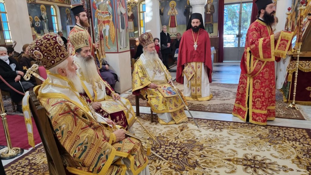 Χοροστάτησε ο Μητροπολίτης Λήμνου και Αγίου Ευστρατίου κ. Ιερόθεος και συγχοροστάτησαν ο Μητροπολίτης Φθιώτιδος κ. Συμεών και ο Μητροπολίτης Ύδρας, Σπετσών και Αιγίνης κ. Εφραίμ