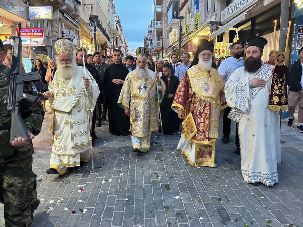 Προηγήθηκε ο Μέγας Πανηγυρικός Εσπερινός στον ιστορικό ναό του Ηρακλείου, κατά τον οποίο χοροστάτησε ο Σεβ. Αρχιεπίσκοπος Κρήτης και Πρόεδρος της Ιεράς Επαρχιακής Συνόδου της Εκκλησίας Κρήτης κ.κ. Ευγένιος, με τη συμμετοχή του Ιερού Κλήρου της Ιεράς Αρχιεπισκοπής Κρήτης. Ακολούθησε υπό τους ήχους της Φιλαρμονικής του Δήμου Ηρακλείου η λιτάνευση της Τιμίας Κάρας, με τη συμμετοχή και του Θεοφιλ. Επισκόπου Κνωσού κ. Μεθοδίου, των αρχών της πόλεως, των εκπροσώπων των στρατιωτικών αρχών και φορέων και πλήθους κόσμου