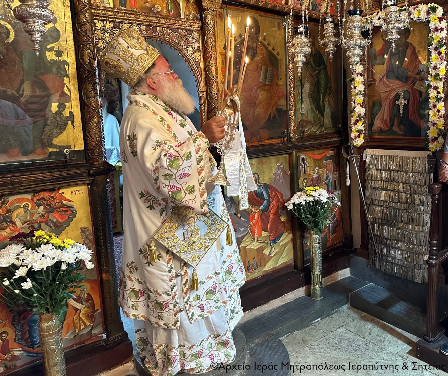 Ανήμερα της πανηγύρεως, Τρίτη 26 Σεπτεμβρίου 2023, τελέσθηκε η ακολουθία του Όρθρου, χοροστατούντος του Σεβ. Μητροπολίτου Ιεραπύτνης και Σητείας κ. Κυρίλλου, ο οποίος στη συνέχεια ιερούργησε, περιστοιχούμενος από Κληρικούς της Ι. Μητροπόλεως, και κήρυξε επίκαιρα τον θείο λόγο.