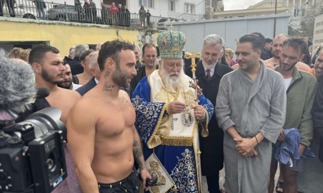 Σε μήνυμά του προς τους πιστούς που κατέκλυσαν το παλιό λιμάνι ο κ. Νεκτάριος τόνισε ότι λαμπαδοφεγγεί πάσα η κτίση, καθώς ο Κύριός μας επεφάνη στον κόσμο. Έφερε την ειρήνη στον κόσμο διά της ενανθρωπήσεώς Του, κι αυτό φάνηκε από το «Δόξα εν υψίστοις Θεώ και επί γης ειρήνη», που αναφώνησαν οι άγγελοι. Ο κόσμος ήταν κόσμος ταραχής που ζούσε στην ιδιοτέλεια και στο πνευματικό σκοτάδι και χρειαζόταν την ειρήνη του Χριστού. Η ειρήνη αυτή δεν υπάρχει σήμερα, οπότε και ζούμε σε μία εποχή που αναταράσσεται από τις ακοές πολέμων σε όλο τον πλανήτη. Ο Κύριός μας όμως μάς υπενθυμίζει ότι μέσα από τον αγιασμό μας έρχεται η ειρήνη και η αγάπη που είναι ισχυρότερη από κάθε εξουσία, από κάθε τι άλλο που εκτιμά ο κόσμος στα παρόντα. Ας προσεγγίσουμε λοιπόν τις δωρεές του Θεού αν θέλουμε ο πλανήτης μας, ο τόπος μας, η πατρίδα μας να απαλλαγούν από όσα μας ταλαιπωρούν. Ο κ. Νεκτάριος ευχήθηκε για τη νέα χρονιά τόσο στους άρχοντες του τόπου, όσο και στους κληρικούς, αλλά και στον λαό του Θεού, να καταλάμψει το φως της θεότητας στις καρδιές, στον νου, στις ψυχές έτσι, ώστε να απομακρυνθεί κάθε ταραχή, κάθε κακία, κάθε αμαρτία και να ζήσουμε την αγάπη του Θεού.
