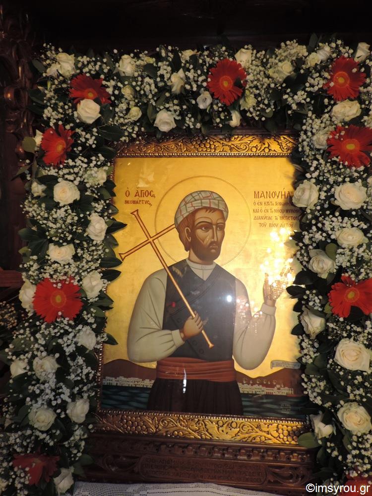 Ο Άγιος Μανουήλ , ο οποίος έζησε επί δεκαετίες στη Μύκονο και, αναχωρήσας εξ αυτής για επαγγελματικές του δραστηριότητες, μαρτύρησε στη Χίο, πριν 225 χρόνια.