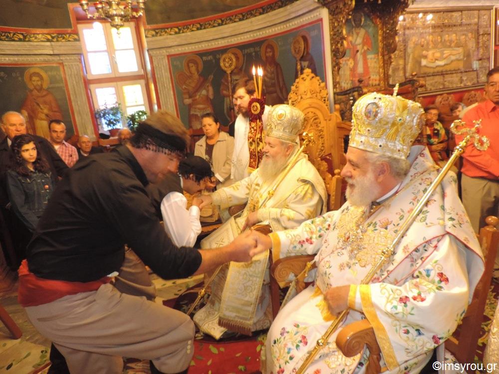 Δισαρχιερατική Θεία Λειτουργία τελέσθηκε το πρωί της Κυριακής 15 Οκτωβρίου στον Ιερό Μητροπολιτικό Ναό της Μεγάλης Παναγιάς Μυκόνου, προεξάρχοντος του Σεβασμιωτάτου Μητροπολίτου Κυδωνίας και Αποκορώνου Κρήτης κ. Δαμασκηνού και συνιερουργούντος του Σεβασμιωτάτου κ. Δωροθέου Β’, επί τη ιερά μνήμη του Αγίου Νεομάρτυρος Μανουήλ του Κρητός.