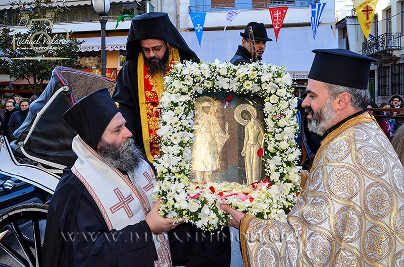 Λίγο μετά τίς 10:30 π.μ. πραγματοποιήθηκε ἡ Λιτάνευσις τῶν Ἱερῶν Λειψάνων τοῦ Ἁγίου καί ἡ ἐναποθεσίς τους στόν Ἱερό Μητροπολιτικό Ναό τοῦ Ἁγίου Ἀθανασίου, ὅπου θά παραμείνουν μέχρι τό ἀπόγευμα τῆς Παρασκευής 18 Ἰανουαρίου, ὁπότε καί θά ἐπιστρέψουν στόν Ἱερό Προκυνηματικό Ναό τοῦ Ἁγίου στήν Πλατεία Πάργης.